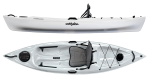 The removable seat clips into place in seconds and consists of thick antimicrobial, marine grade foam, and UV-resistant mesh fabric, giving it excellent comfort and durability. An 8" bow hatch and 5.25" quarter-turn tankwell hatch provide easy access to most of the interior space. The cockpit features adjustable foot braces, a 6" accessory gear track and a self-draining seat pan. Bow and stern webbed carry handles provide comfort for straightforward two-person handling while perfectly balanced side carry handles make it easy for solo handling. The side handles also double as one-handed paddle holders. The raised seat provides good visibility and a dry ride, while the four scuppers allow for effective drainage of the cockpit and tank well. A stern drain plug allows for easy drainage of the interior space if needed.